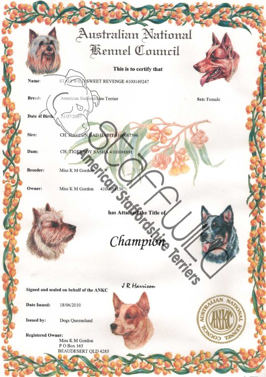 | American Staffordshire Terrier Club of QLD - 2011 - Mrs Linda Flegg (NZ) |